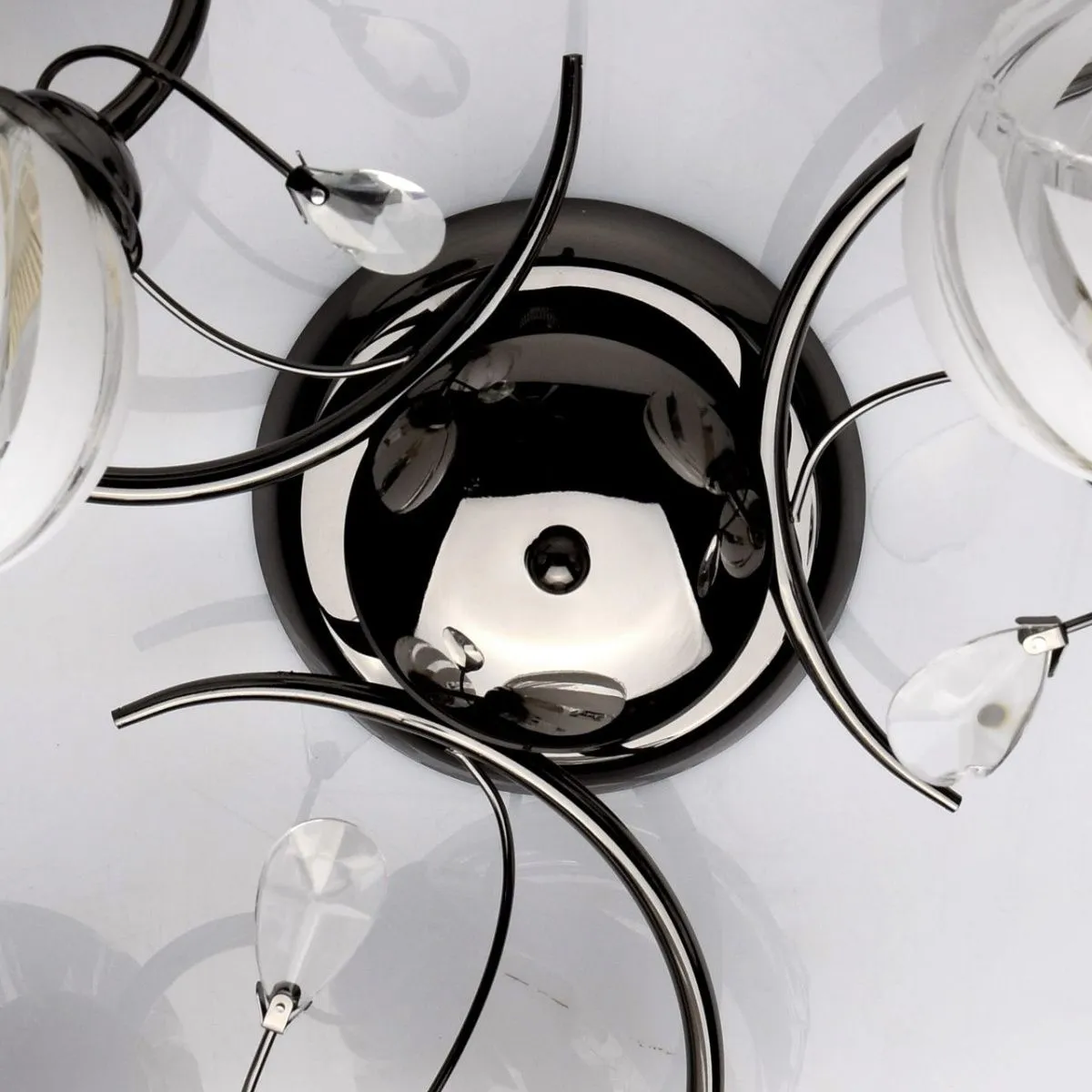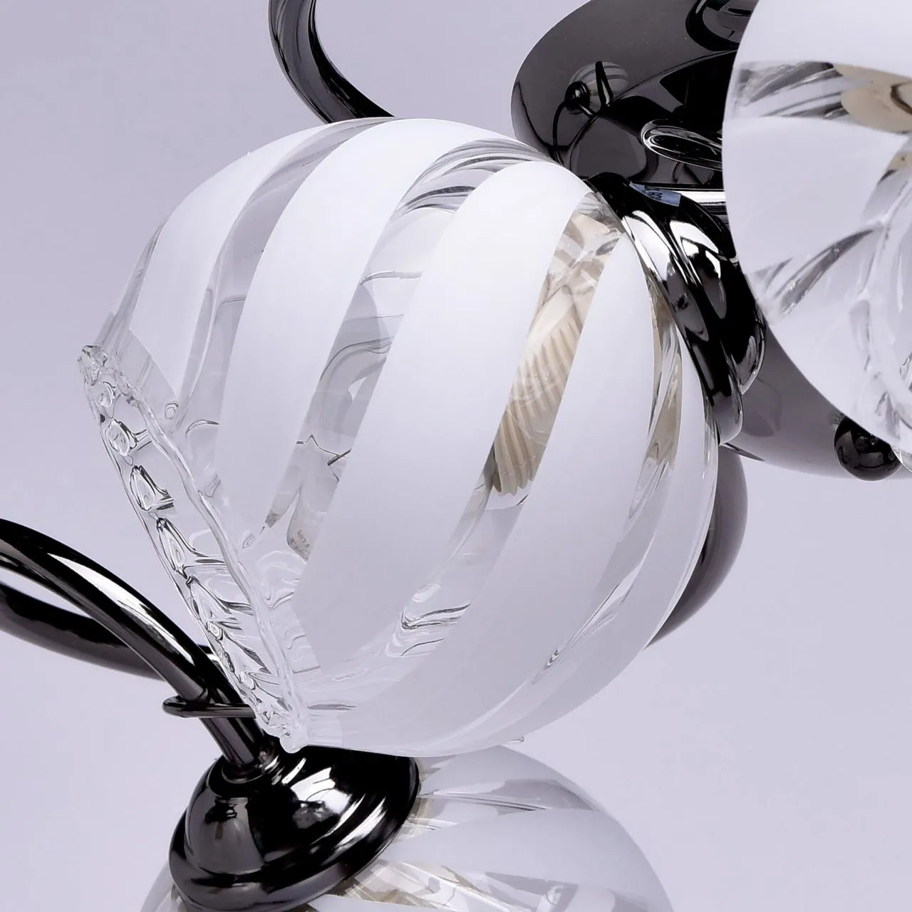 Металлическое основание цвета никеля, плафоны из стекла с рисунком. Декор из декоративного стекла.