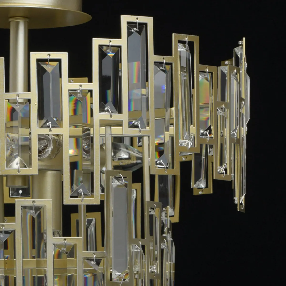 Металлическое основание цвета перламутрового золота. Декор - хрусталь.